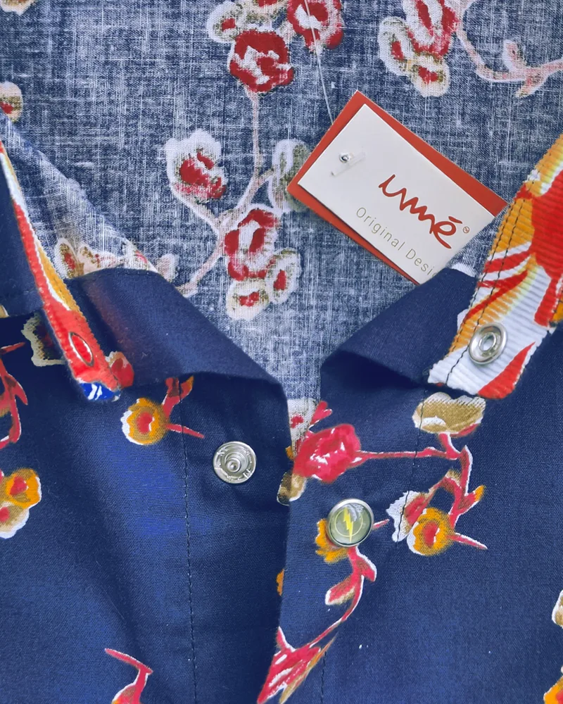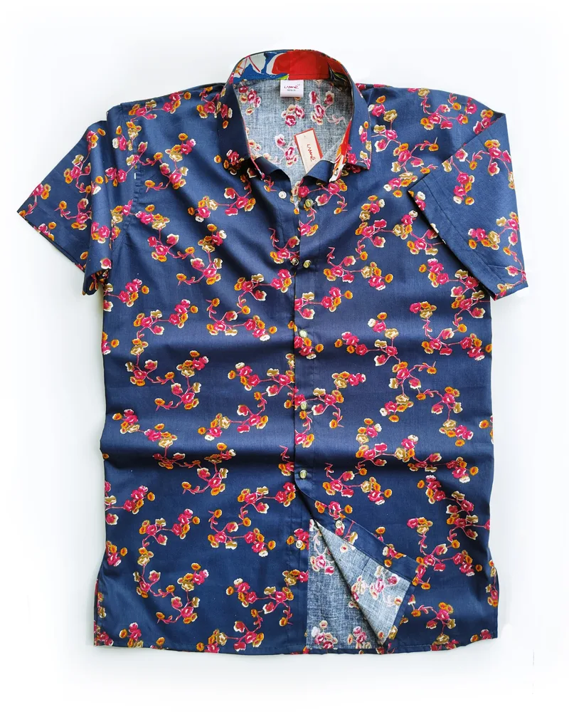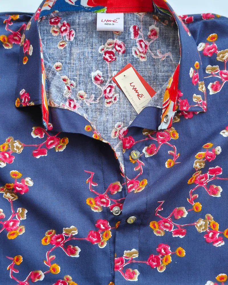 Introducing our stunning navy blue floral print design, featuring intricate patterns and metal stylized press buttons. Perfect for casual and evening wear, this outfit combines comfort and style effortlessly. The navy blue color adds a touch of sophistication, while the floral print brings out the elegance.